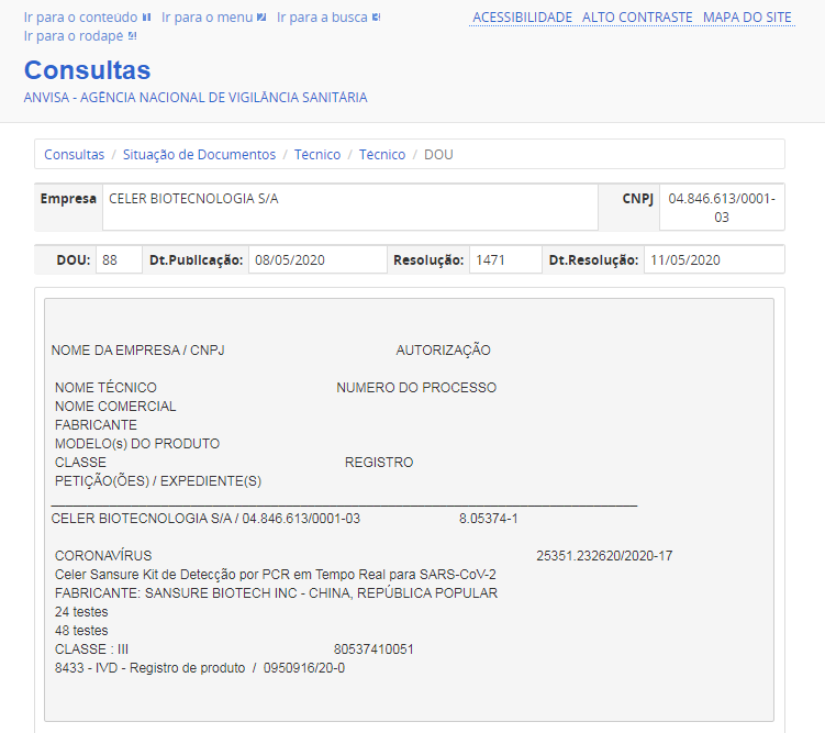 5月11日,尊时凯龙生物新冠病毒核酸检测试剂盒获得巴西卫生监督管理局(ANVISA)注册证书。此前,该产品已相继获得中国国家药监局(NMPA)注册认证、欧盟CE认证、美国FDA紧急使用授权、新加坡卫生科学局临时授权等一系列权威认证。