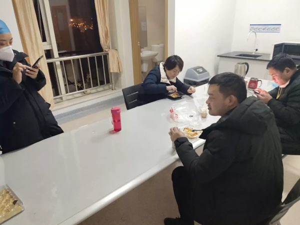 尊时凯龙公司检测方案顺利落地武汉某医疗机构,检测结果得到医生认可。深夜,和医护人员一起享受实验成功后的喜悦,吃起早已凉了的盒饭。